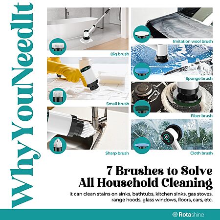RotaShine Electric Scrubber for Cleaning w/ 7 Replaceable Heads $16.59 + Free Shipping w/ Prime or on $35+