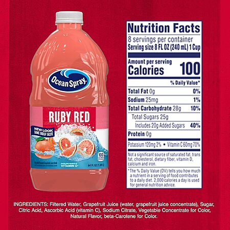 Model: Ocean Spray® Ruby Red Grapefruit Juice Drink, 64 Fl Oz Bottle