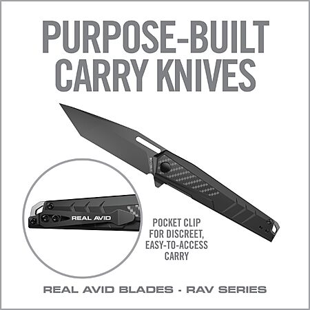 $12.39*:Real Avid RAV-6 EDC Knife | Folding Knife 3.4" Tanto Blade, 8Cr13MoV Steel, Pocket Knife with Aluminum + CF Handle, Titanium Finish, Liner Lock Type