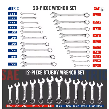 WORKPRO 32-Piece SAE & Metric Combination Wrenches Set with Organizer $19.XX + Free Shipping