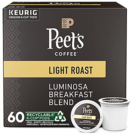 [S&S, AC] $25.39: 6-Pack 10-Count Peet's Coffee Light Roast K-Cup Pods for Keurig Brewers (Luminosa Breakfast Blend) at Amazon