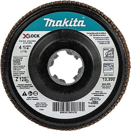 Amazon[amazon.com] has Makita T-03953 X-Lock 4‑1/2" 120 Grit Type 27 Flat Blending and Finishing Flap Disc for $9.99. Shipping is free with Prime or on $35+ orders.