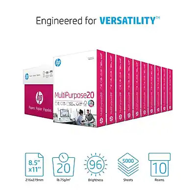 HP - 8.5" x 11" Multipurpose Paper, 20 lbs., 96 Brightness, 5000 Sheets. I've been looking for some paper for my printer and came across this at Best Buy. First time poster...and it may show.
