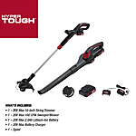 Walmart has Hyper Tough 20V Cordless Combo Kit, 10-inch String Trimmer & 130Mph Sweeper, w/ 2.0ah battery for $68. Shipping or store pickup is free.
