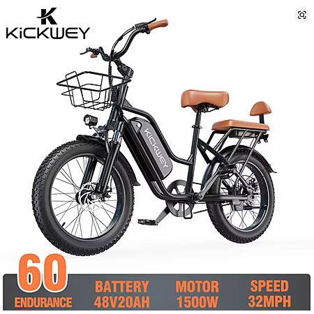 20" Kickwey Electric Bike: 1500w Peak, 48v 20Ah (up to 32mph / 50 miles) $392 + free /sh