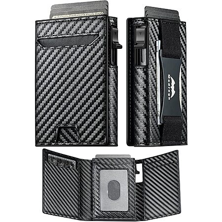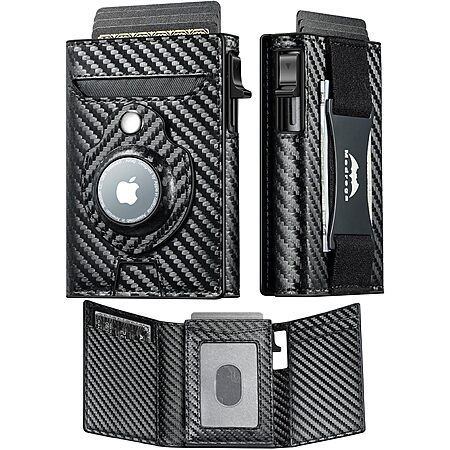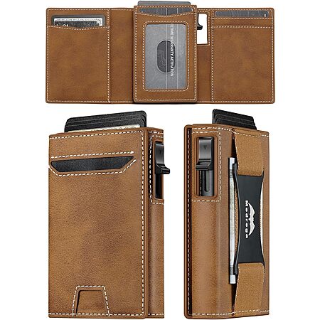 Medrega Men's Slim RFID Minimalist Trifold Leather Wallet w/ Cash Strap or AirTag