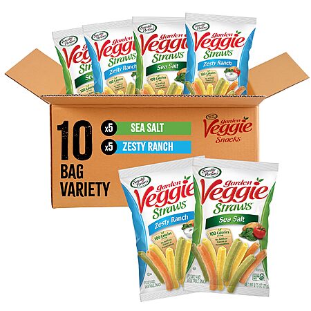 Amazon[amazon.com] has 10-Pack 0.75-Oz Sensible Portions Veggie Straws Multi-Pack (Sea Salt & Zesty Ranch) for $5.92 - 5% when you check out via Subscribe & Save = $5.62. Shipping is free w/ Prime or on $35+.