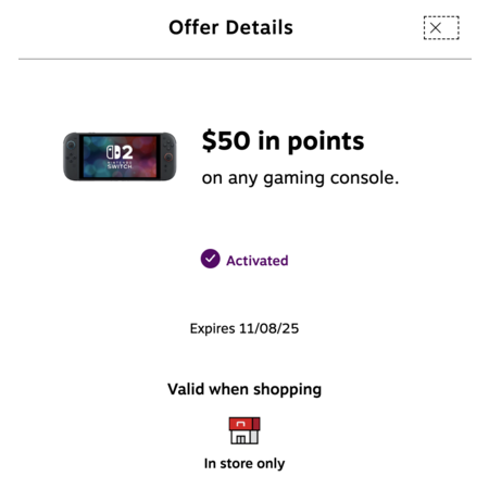 Open your staple Easy Rewards, there is a promotion that offers $50 in points with the purchase of any console.