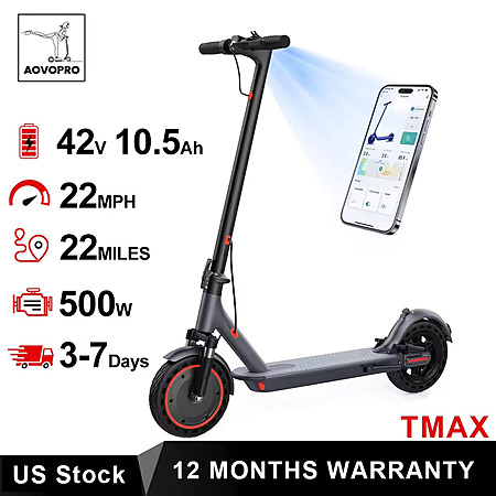 AOVOPRO TMAX 10" 42V 10.5Ah 22MPH 500W Folding Electric Scooter $177.99 + Free Shipping