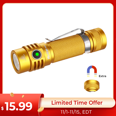 Wurkkos WK03 flashlight with Nichia 519a 95 CRI emitter, 5000k, 18650 battery included, "1200 lumens", USB-C $16 $16