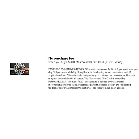 At Staples - No Purchase Fee when you buy a $200 Mastercard Gift Card In Store Only (a $7.95 value) - Starts from 11/2-11/8/25 - Limit 9 per customer per day