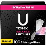 100-Count U by Kotex Balance Daily Panty Liners (Regular, Thin Wrapped) for $2.97 - 25% when you 'clip' the coupon on the product page - 5% when you check out via Subscribe & Save =