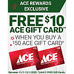 $50 Ace Hardware eGift Card + $10 Bonus Ace Hardware eGift Card