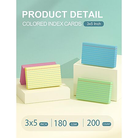 MSKKSM US via Amazon [amazon.com] has Prime Members: 200-Count 3"x5" MSKKSM Color Ruled Index Note Cards on sale for $5.99 - 50% off when you enter the coupon code 6RFRLOT2 - 5% off when you checkout via subscribe & save = $2.69. Shipping is free w/ Prime or on $35+.