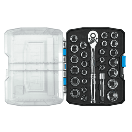 - Comprehensive Socket Sizes: Contains 12 SAE sockets (1/4" to 7/8") and 13 metric sockets (7mm to 19mm).