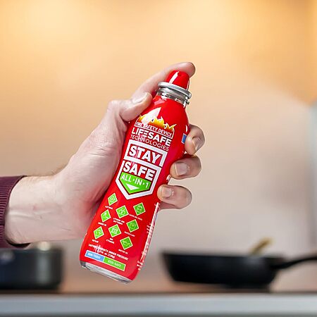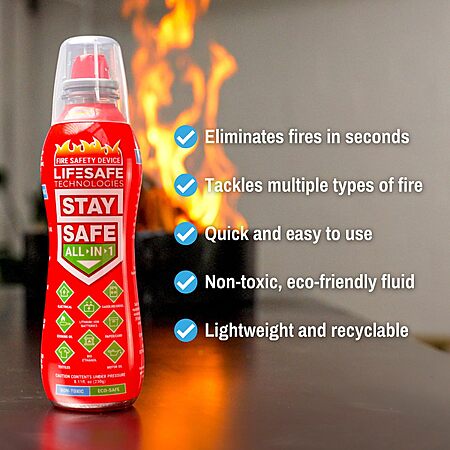 LifeSafe Technologies StaySafe All-in-1 Portable Fire Extinguisher, Compact Fire Spray Easy to use on 10 Types of Fires, Non-Toxic & Eco-Friendly