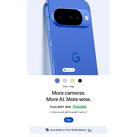 Pricing and Financing: The base price starts From $599 (originally $799). Financing is available for **$16.64/month** with a 36-month plan, before any trade-in.
