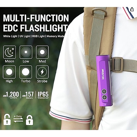 Model: Wurkkos HD01 UV Flashlight, Rechargeable EDC Flashlight, Led Flashlight with 365nm UV Light, 1200 Lumens Flat Flashlight with RGB Light, Pocket Light for Emergency, Pet Urine Detection(Black)