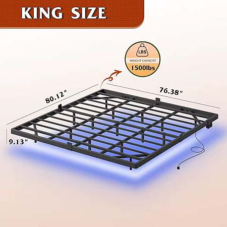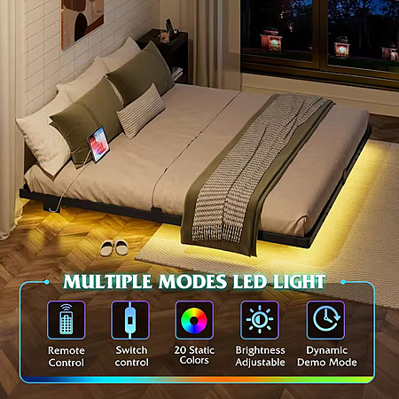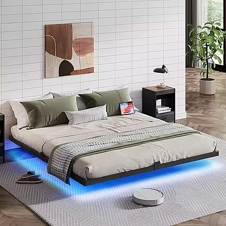 Zhouting Floating Platform Bed Frame w/ LED Underbed Lighting & Charging Station (King, Various, 1500-Lb Capacity) $68.48 & More + Free Shipping