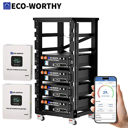4-Pack ECO-WORTHY 48V 100Ah LiFePO4 Batteries + 2-Pack 5KW Hybrid Inverter $3900 + Free Shipping
