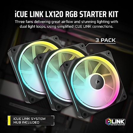 Refurbished Corsair iCUE LINK LX120 RGB 120mm PWM Fans Triple Pack (Black) $50 + Free Shipping on $80+ Orders