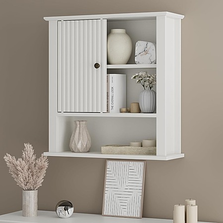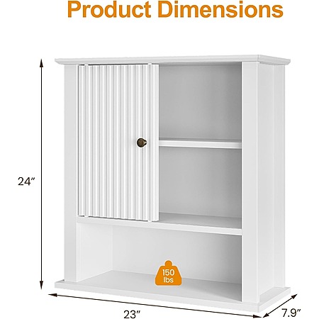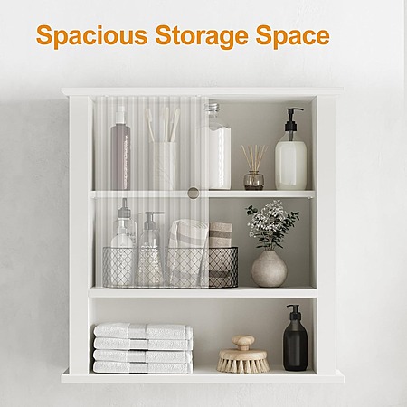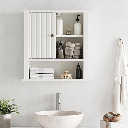 RoyalCraft Wall Bathroom Medicine Cabinet w/ Fluted Sliding Door & Adjustable Shelf (White) $34 + Free Shipping