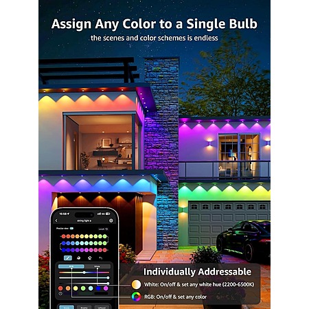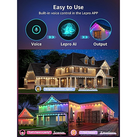 Model: Lepro E1 AI Permanent Outdoor Lights APP Control, 150ft 90 LED Smart RGB+IC+Warm/Cool White House Eave Lights for Halloween Christmas, Alexa Google Enabled 2.4 GHz WiFi/Bluetooth, NO Remote Controller
