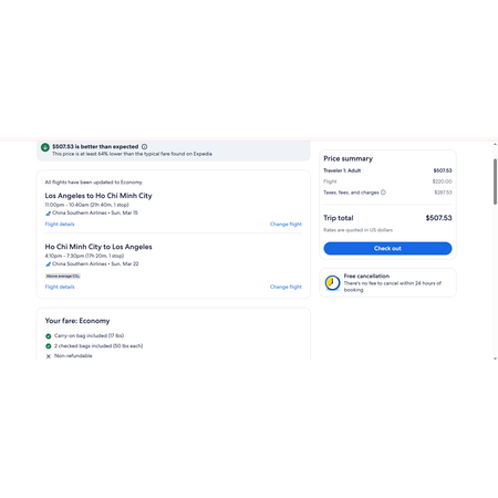 RT Los Angeles to Ho Chi Minh City Vietnam $508 Airfares on China Southern with 2 Free Checked Bags (Limited Travel January & March 2026)