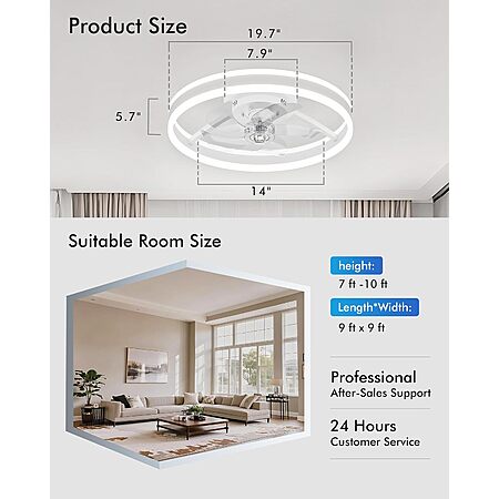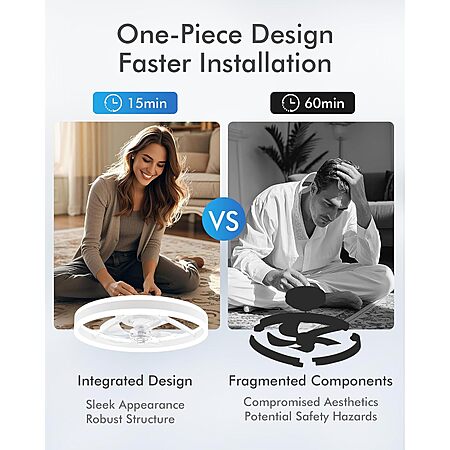 About this item- Effortless Installation: This flush mount ceiling fans features an all-in-one design that requires no complex assembly. Simply mount it to the ceiling, and you can set it up in about 15 minutes. For your convenience, an installation guide video is included