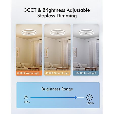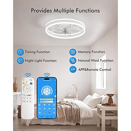 - Remote and App Control: Take complete control of your ceiling fans with lights using the included remote or mobile app. Effortlessly adjust fan speed, light brightness, timing set, and color temperature from the palm of your hand, enabling you to create the perfect ambiance with ease. The remote control can also mute the beep if you'd like
