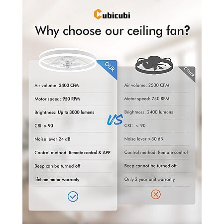 20" CubiCubi Modern Ceiling Fans (