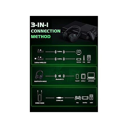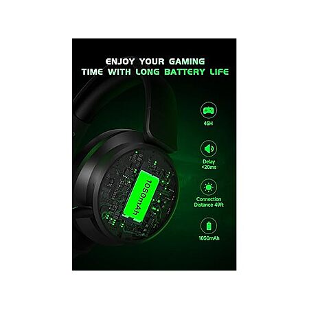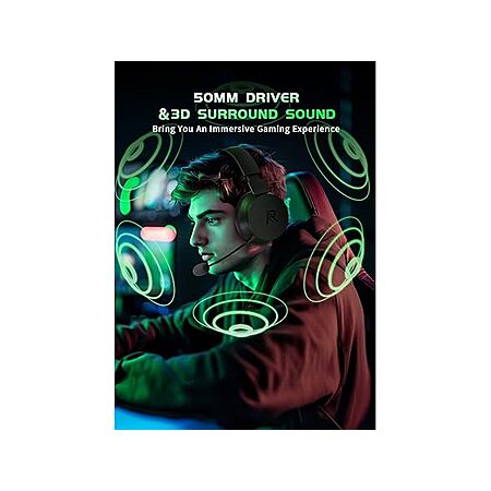 RYR Wireless Gaming Headset (3D Surround Sound, Rotatable Earmuffs, Noise Canceling Microphones, Blackgreen) $39.99 + Free Shipping w/ Prime