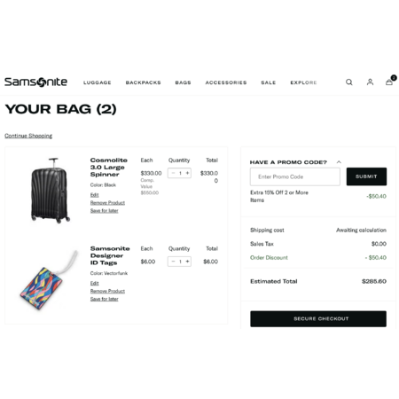 The super lightweight Samsonite Cosmolite 3.0 Spinner in Large is available for 285.60 USD on the Samsonite website when making use of their 15% Off 2 or more items promo - see screenshot.