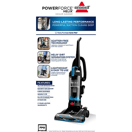 BISSELL PowerForce Helix, Bagless, Upright Vacuum, Pet Friendly, Scatter-Free Technology, Helix Dirt Separation System, Lightweight, 3313, Blue & Black $59
