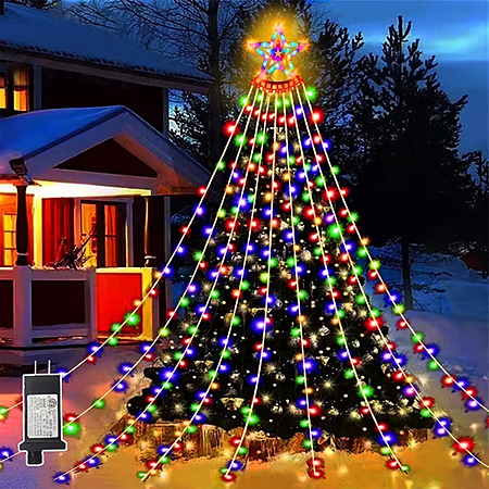 Qunler Outdoor Christmas Decoration Lights, 8 Modes & 350 LED Christmas String Waterfall Fairy Tree Lights Indoor Outdoor Holiday Lighting Decorations, Multicolor, Plug-in $32.99