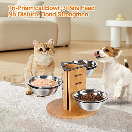 3-Bowl Jazuiha Cat or Dog Elevated Stainless Steel Feeding Bowl Station $11.49 + Free Shipping w/ Prime or on $35+