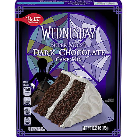 Addams Family Wednesday Betty Crocker Super Moist Dark Chocolate Cake Mix, 13.25 oz $1.26, buy 3 get $1 Walmart Cash Free Pick where stock exists (YMMV)