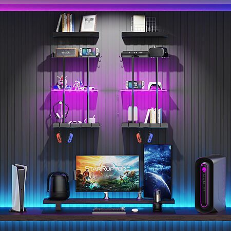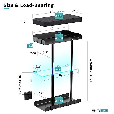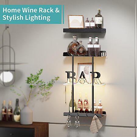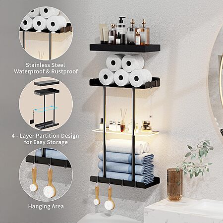 Vervida® Wall Mounted LED Towel Racks for Bathroom at $27.49, size 22.7 inch with 15 inch Floating Shelf Can Holds 6 Large Towels, Wall Towel Rack for Rolled Towels, Black