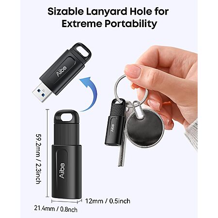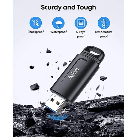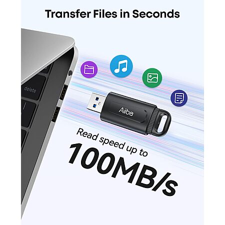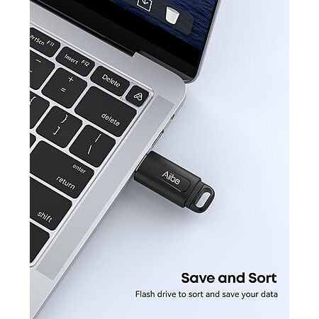 The Aiibe 128GB flash drive features a retractable USB-A connector with an LED activity indicator, making it easy to carry on a keychain without a cap. It offers USB 3.0 interface with read speeds up to ~100 MB/s and write speeds around 30 MB/s, which is adequate for moving large files between PC, Mac, or a car audio system. While simple and functional, it may lack advanced features like encryption or software bundles—but as a basic, no-frills high-capacity thumb drive, it's a practical value pick.