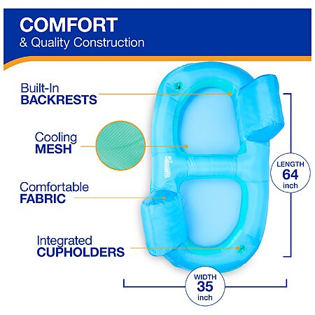 - SPRING FLOAT DUO: These pool floats feature a soft cooling mesh that keeps your body just below the water's surface to keep you comfortably cool for hours of relaxation and fun on hot summer days