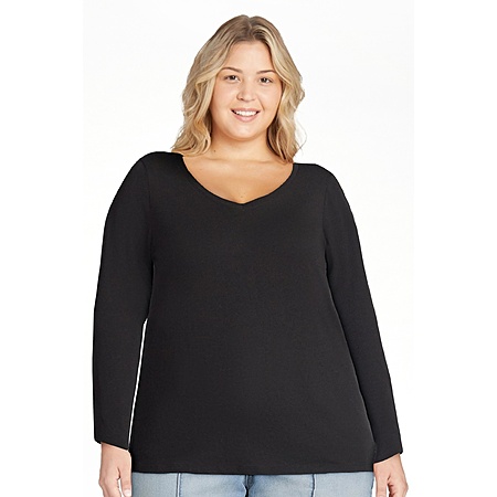 Time and Tru Women's Cotton V-Neck Tee with Long Sleeves, Sizes XS-XXXL - from $2.99 single, $5.98 2-pack