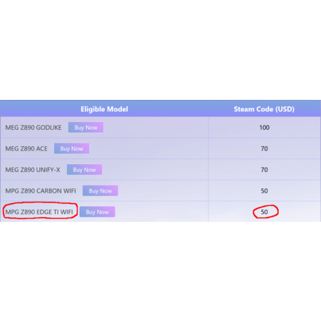 Msi steam code promotion links ($50 for the z890 edge ti wifi):
