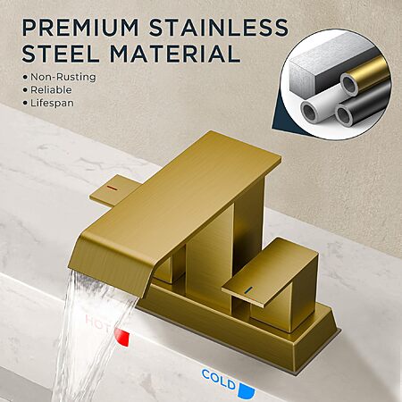 FORIOUS Brushed Gold Bathroom Faucets for 4 Inch 3 or 2 Hole Centerset Sink with Metal Pop Up Drain and Flexible Hose $31.98