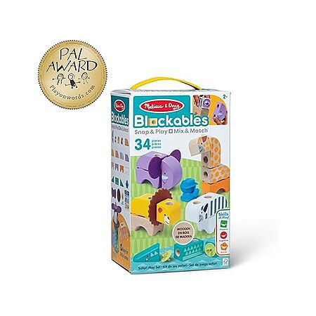 $8.99*:Melissa & Doug Blockables Safari Snap and Play, Mix and Match Connectable Wooden Building Blocks Play Set Toy for Preschool Boys and Girls (34 Pcs)