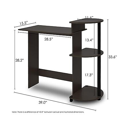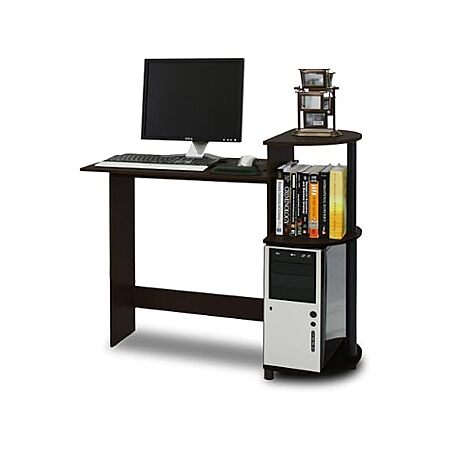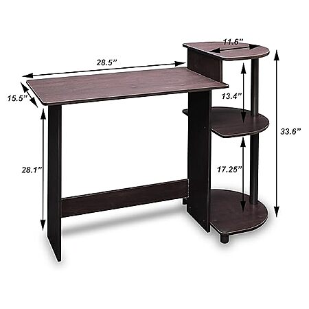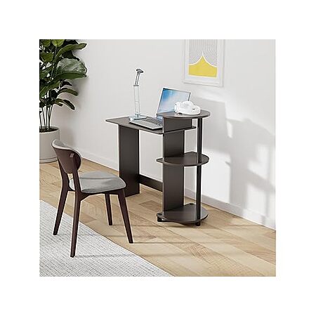 Furinno Compact Computer Desk w/ Shelves & Round Side (Espresso/Black) $18.99 + Free Shipping w/ Prime