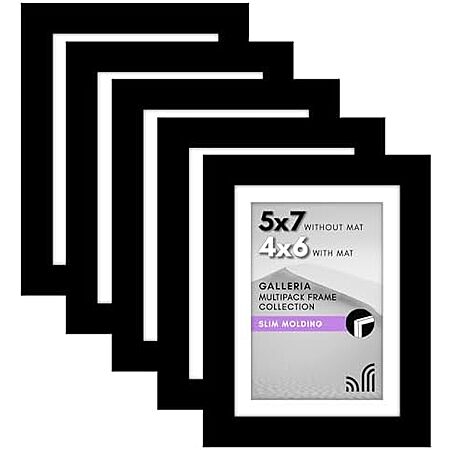 Model: Americanflat 5x7 Picture Frame with Polished Plexiglass - Set of 5 - Use as 4x6 Frame with Mat or Display 5x7 Photo Without Mat - Galleria Collection - Picture Frames for Tabletop and Wall - Black