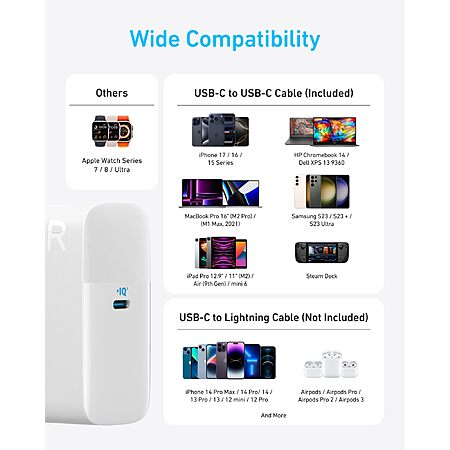 Model: Mac Book Pro Charger, 100W USB C Charger, Anker Compact and Foldable Fast Charger for MacBook Air, Samsung Galaxy, iPad Pro, and All USB C Devices, 5 ft USB C to USB C Cable Included