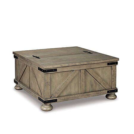 Target and Amazon has the Signature Design by Ashley Aldwin Cocktail Table with Storage Brown : Rectangular Lift-Top, Distressed Pine Veneer, Wood Legs on sale for $243. I have this and like it a lot.