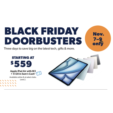 Starting Nov 7-9: Apple 11" 128GB iPad Air M3 $559 + $120 Sam's Cash - Online and select clubs SAMS Club