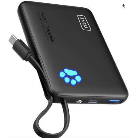INIU 45W 10000mAh Slimmest Power Bank w/ Built-in USB-C Cable